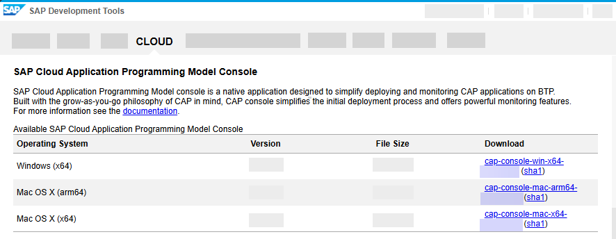 CAP console is licensed under the SAP Developer License 3.1.